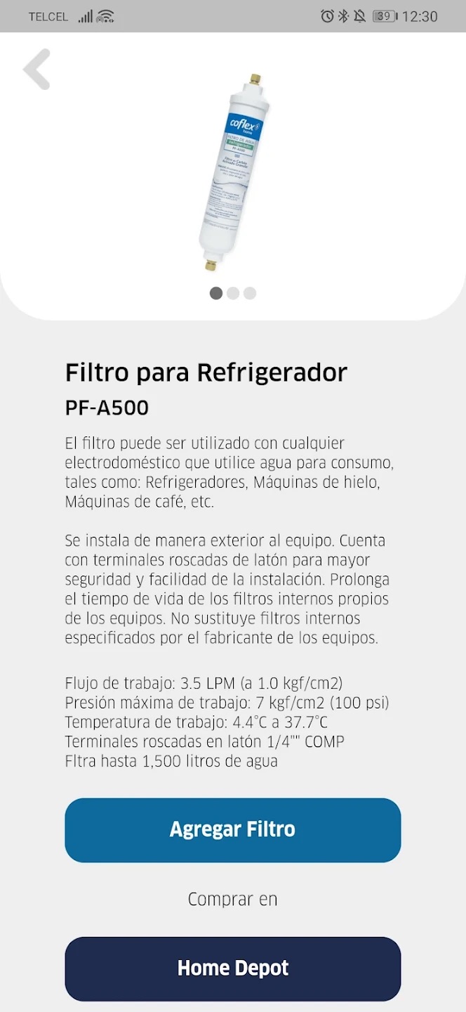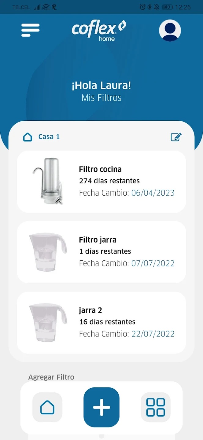 Con la ayuda de la App Coflex Home sabrás cuándo reemplazar tu filtro, ya que podrás registrar el filtro que instalaste, automáticamente hará un cálculo de su vida útil y se generará la fecha de reemplazo; la App enviará notificaciones cuando la fecha se aproxime.